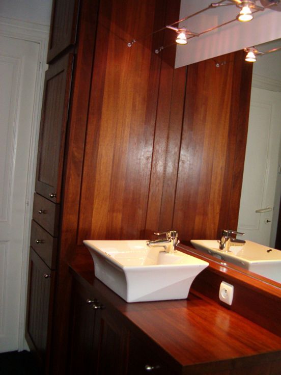 1 Chambre à coucher (tapis plein), double espace communicant salle à manger/salon (tapis plein) (seconde chambre possible), grande cuisine, salle de bain en teck, hall.