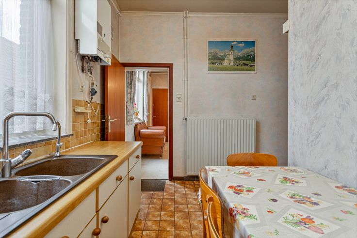 Te Jonkershove, deelgemeente van Houthulst, bieden we u deze ruime halfopen, te renoveren bebouwing aan. De woonst bevindt zich op een zeer groot perceel van maar liefst 2.165 m2, centraal gelegen pal in het dorpscentrum, en biedt u een waaier aan mogelijkheden. De ideale uitvalsbasis voor wie houdt van veel ruimte en groen. Het eigendom verkeert in een verzorgde, goed onderhouden staat en heeft een ruime bewoonbare oppervlakte van 182 m2. Doch is er nood aan een energetische renovatie en modernisering. Op heden wordt er verwarmd op centrale verwarming (stookolie), alsook beschikt men over drijfkracht en zowel regenwater als steenputwater. Aansluiting op aardgas is tevens mogelijk. Het dak werd reeds vernieuwd in 1988 en verkeert in goede staat. Daarnaast beschikken de ramen voor het merendeel over elektrische rolluiken. De indeling van de ruimtes is als volgt: Gelijkvloers: woonkamer (29 m2) met eetplaats en zithoek - afzonderlijke, ingerichte keuken (10 m2) - badkamer uitgerust met douche, lavabo en toilet - 2 gelijkvloerse slaapkamers (14 m2 en 12 m2) - toegang tot droge kelder (12 m2) - slaapkamer 3 op de voute (9 m2) - wasplaats en stookruimte (8 m2). Eerste verdieping: traphal - slaapkamer 4 (16 m2) - 2 afzonderlijke zoldergedeeltes van beiden ca. 30 m2, geschikt voor het inrichten van extra slaapkamer(s). Exterieur: grote, groene tuin met boomgaard - koer/terras en oprit langszij - garage en verschillende bijgebouwen/aanhorigheden. Enkele troe... Renovatieplicht: ja