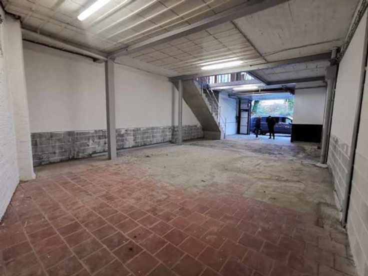 Situé dans une rue calme, à 500m de l'axiale boraine (Spilmont): Bel entrepôt de stockage remis à neuf de +/- 104m².