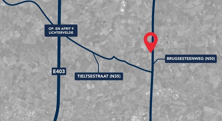 Vlot bereikbaar dankzij de zichtbare ligging langs de bedrijvige Brugsesteenweg (N50). De Lichterveldestraat/Tieltsestraat (N35) bereikt men na 750 m en biedt na 4,8 km verbinding naar de E403 via op- en afrit 9 Lichtervelde. Van hieruit zijn zowel Brugge als Kortrijk vlot bereikbaar. Onmiddellijk beschikbaar. Contacteer PANORAMA B2B voor bijkomende inlichtingen of een vrijblijvend plaatsbezoek 0476 215 115.