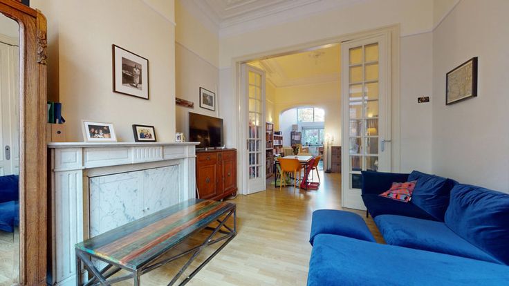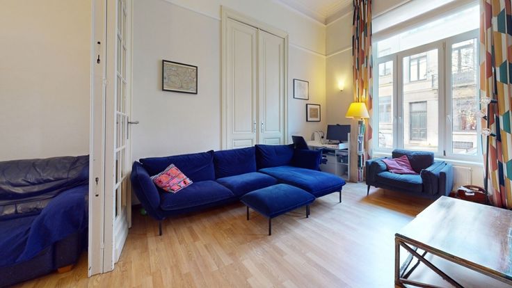 BRUSSEL (AMBIORIX) - Ideale ligging vlakbij de Place des Chasseurs Ardennais en alle voorzieningen (winkels, vervoer, enz.). Charmante SOUPLEX van +/- 134m2 (oppervlakte PEB) met 2 slaapkamers + dressing of bureau en achtertuin van +/- 75m2 gelegen in een klein flatgebouw zonder lift met lage lasten. Het appartement bestaat uit BEGANE GROND: Entree, hal met garderobe met toegang tot een eetkamer van +/-16m2, een lichte woonkamer van +/-17m2 met open haard, een open keuken van +/-14m2 met toegang tot de tuin en achterterras van +/-30m2 - 1 slaapkamer van +/-15m2 met ingebouwde kasten. Benedenverdieping BASEMENT: Nachthal, kleedkamer/studeerkamer van +/-6m2, badkamer met bad, douche, wastafel, wasmachine ruimte - 1 slaapkamer van +/-15m2 (niet onderworpen aan bouwvergunning en beschouwd als een kelder) Diversen: 1 kelder, individuele gasketel (2010), dubbele beglazing, conforme elektriciteit, Plannen & RU beschikbaar op aanvraag. Een must-see woning. PEB = E- ! PRIJS: €475,000. De eigenaar behoudt zich het recht voor om elk bod te accepteren of te weigeren. --- VIRTUEEL BEZOEK: https://my.matterport.com/show/?