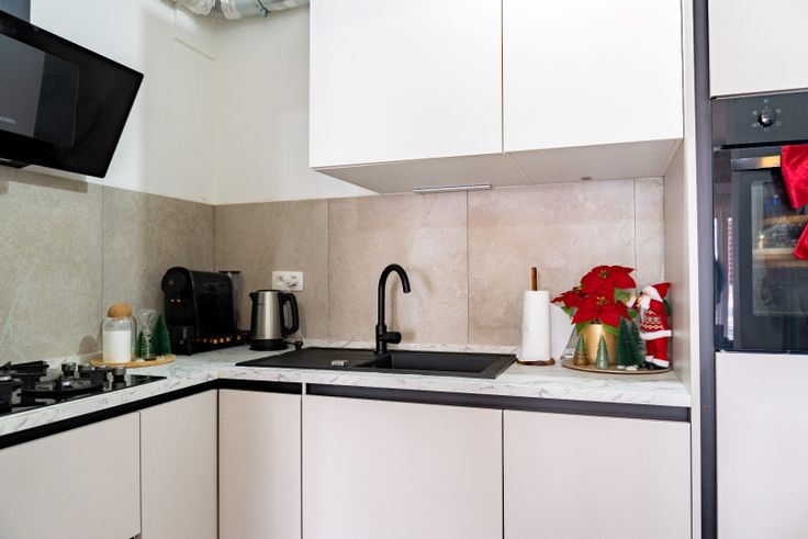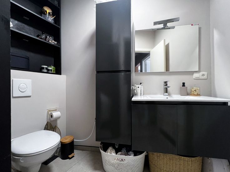 Ruime inkomhal- lichtrijke leefruimte - open keuken met gaskookplaat, oven, koelkast met vrieskast, spoelbak, dampkap en vaatwasmachine - slaapkamer - uitgeruste badkamer met inloopdouche, wastafel en toilet.