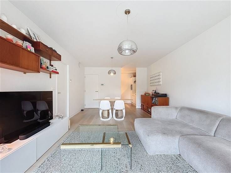 Nieuwbouw onder registratierechten, geen BTW. Ontdek dit moderne appartement in het hart van Brussel, dat een harmonieuze mix van stijl en comfort biedt. Met een bewoonbare oppervlakte van 70m², vormen de ruime woon- en eetkamer samen een oase van licht dankzij de grote ramen die uitkijken op het groene uitzicht. De strakke afwerking en het stijlvolle design maken deze ruimte ideaal voor zowel ontspanning als entertainment. De volledig uitgeruste keuken is voorzien van hoogwaardige toestellen en biedt voldoende opbergruimte, wat koken tot een plezier maakt. Het appartement beschikt over een ruime slaapkamer die een rustige sfeer uitstraalt, perfect voor een goede nachtrust. De badkamer is modern ingericht met een dubbele wastafel en een inloopdouche, ontworpen om aan al uw comfortbehoeften te voldoen. Een extra troef is het royale terras waar u kunt genieten van rustige momenten in de buitenlucht, omgeven door de bruisende stad. De ruime inkomhal beschikt over een ingebouwde kast die dient als vestiaire en wasruimte. ook zijn er verschillende opbergruimtes voorzien in het hele appartement. De locatie is nabij openbaar vervoer en belangrijke snelwegen, wat dagelijkse verplaatsingen vergemakkelijkt. Deze eigenschap is ideaal voor wie op zoek is naar een centrale woonplaats met moderne gemakken binnen handbereik. Mis deze unieke kans niet om te wonen in een prachtig appartement in een van de meest gewilde buurten van Brussel.