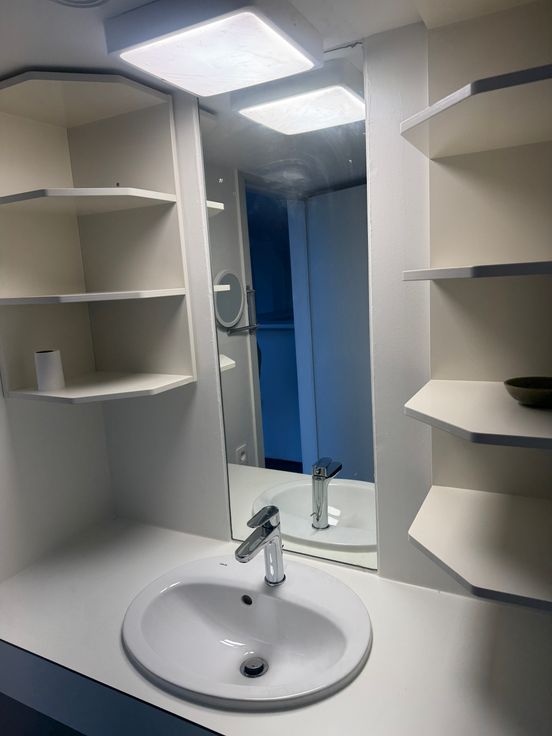 6de verdieping: Groot zuidgericht terras met zonneluifel en prachtig zicht op de torens van Gent, keuken met ruime eetkamer en badkamer met regendouche