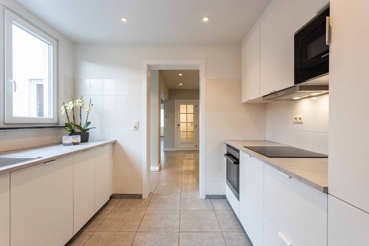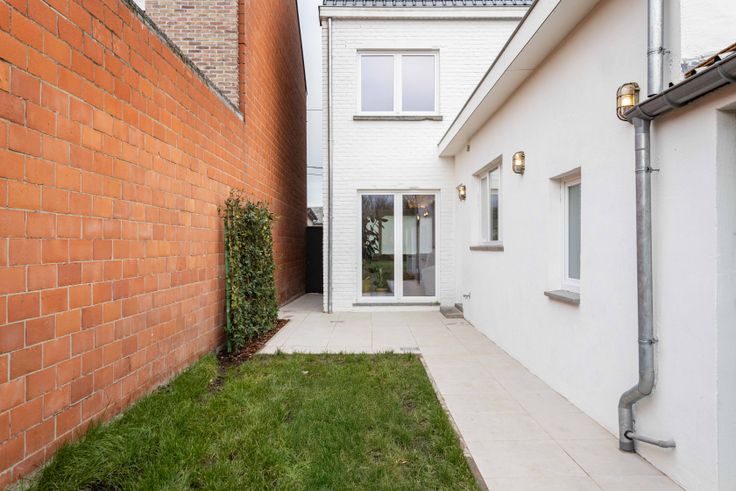 Deze solide woning beschikt op de gelijkvloerse verdieping over een lichtrijke inkomhal, ruime living en eetplaats, gloednieuwe keuken met Siemens toestellen en een badkamer met ligbad en inloopdouche.