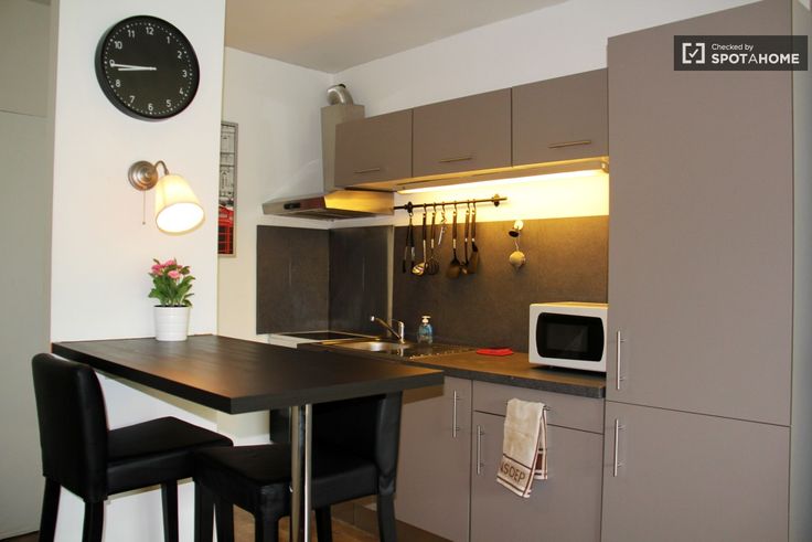 Joli studio de 45m2 totalement équipé. Design moderne. Idéalement situé sur l'avenue Louise à 400m de la place du Châtelain et à 700m de la place Flagey. Nombreux bars et restaurants dans les environs immédiats. Le bâtiment est exclusivement composé de flats et dispose d'un ascenseur. le studio au 5° étage donne sur l'avenue Louise avec exposition sud-ouest offrant de la lumière. le studio est composé d'un salon, un sofa, un bureau, une garderobe, une cuisine américaine équipée. la salle de bain / toilette est séparée. pré cablage TV/Internet