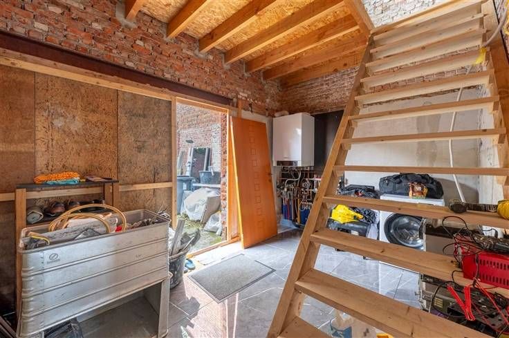 Uitstekend gelegen af te werken woning nabij centrum Sint-Niklaas De woning is gelegen op fietsafstand van hartje sint-Niklaas en op wandelafstand van scholen, winkels en openbaar vervoer. Met een mobiscore van 9,2/10 is werkelijk alles vlakbij! Ook de E17 en N70 zijn vlot bereikbaar. Om de hoek heeft u een groene omgeving met speelplein. Via de inkomhal komt u in de leefruimte die vooraan de woning gelegen is. Aansluitend op de living, vinden we de keuken terug die uitgerust is met alle comfort en natuurlijk licht binnenkrijgt via een dakkoepel. Volgend op de keuken hebt u een doorgang naar de badkamer met toilet. Via de gang komt uit in de berging/wasplaats met toegang tot de gezellige tuin. Ten slotte bevindt zich boven de wasplaats een nog in te richten kamer. Op de eerste verdieping treft u de 2 ruime slaapkamers. Via de vaste trap naar de tweede verdieping komen we uit op een derde slaapkamer/een zolderkamer. Er zijn betonnen vloerplaten alsook een betonnen trap voorzien. Tijdens de renovatie zijn er kwalitatieve materialen gebruikt met oog op duurzaamheid. U kan met een beperkt budget de woning volledig afwerken! Plan snel uw bezoek in en laat u verrassen door deze eigendom met al zijn troeven! voor meer info www.quares.be