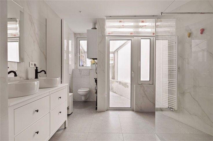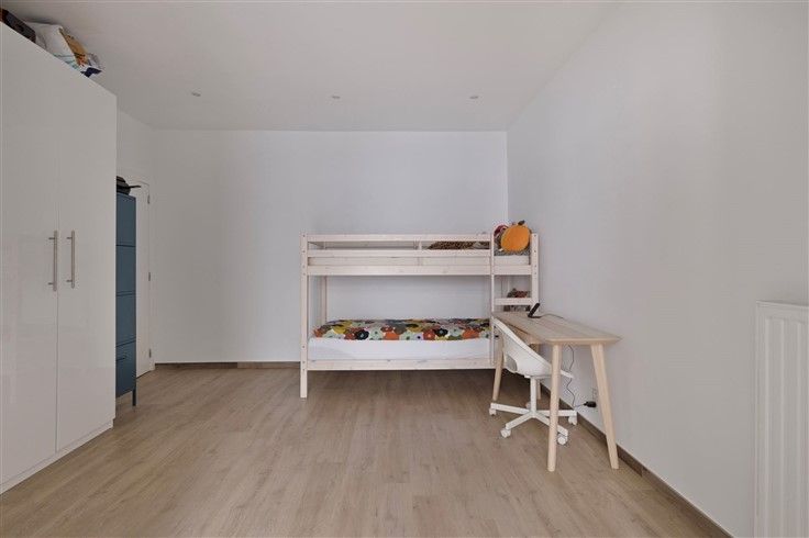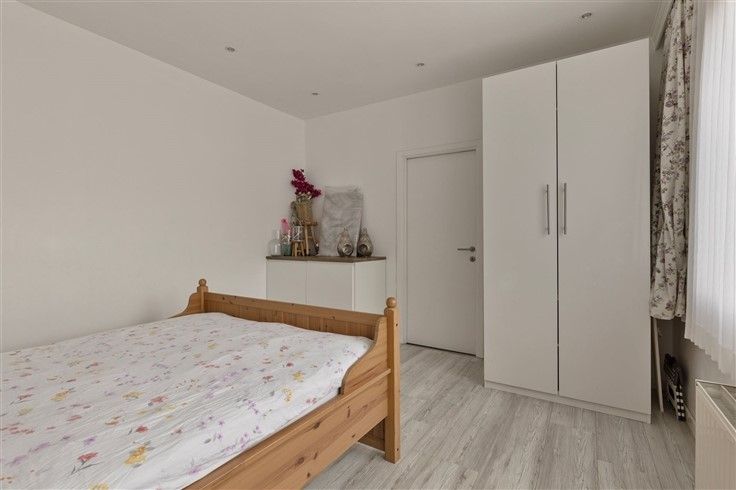 Instapklare Eengezinswoning met 2 slaapkamers en terras. De woning is gelegen vlakbij verschillende winkels, scholen en invalswegen. Indeling Gelijkvloers - Een ruime inkomhal die toegang verleent tot de slaapkamers, kelder en berging. - Slaapkamer 1 is een ruime kamer van 15m² die voorzien is van een laminaatvloer en vliegenramen. - Een ruime bergkast met aansluiting wasmachine/droogkast - Slaapkamer 2 is eveneens een ruime slaapkamer van 15m² met aanpalende de badkamer. - De badkamer is volledig betegeld en voorzien van een moderne inloopdouche, toilet, dubbele lavabo en handdoekdroger. - De badkamer verleent eveneens toegang tot de koer. 1ste Verdieping - Een vernieuwd en volledig betegeld apart toilet. - Een ruime leefruimte van 30m² met veel lichtinval en toegang tot het terras (12m²) - De keuken is voorzien van een 5-pits gasvuur, oven en vaatwasser. Extra Kelder van 10m² overal vliegenramen voorzien