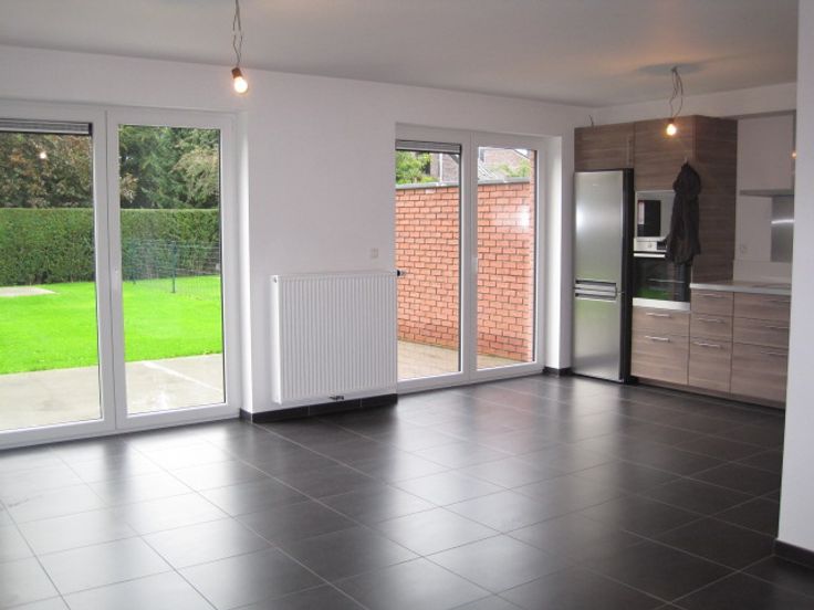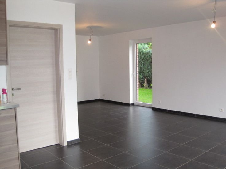 Maison semi-mitoyenne de 2015 à louer, caves sur toute la surface. Au rez de chaussée: hall d'entrée, salon cuisine, garage 1 voiture. A l'étage: 3 chambres, SDB, buanderie.