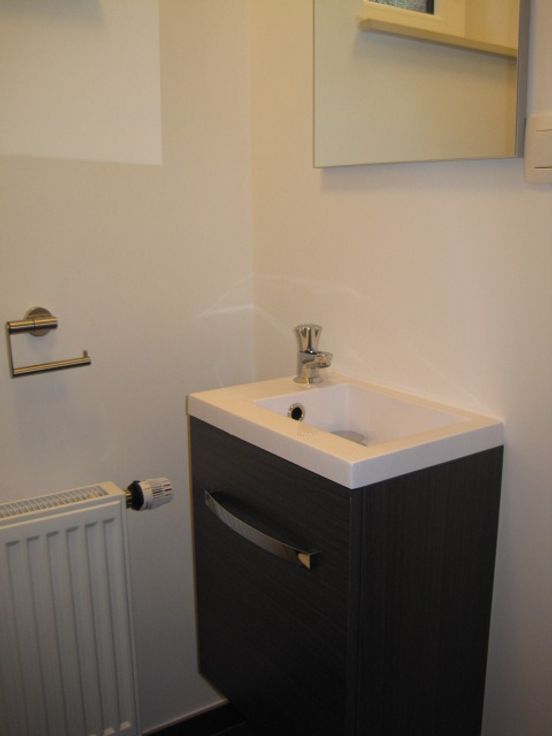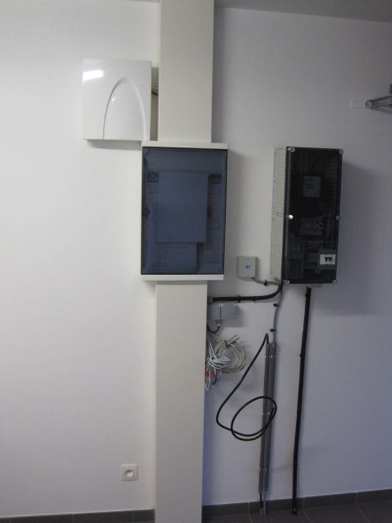la cuisine est équipée avec frigo, four, taque de cuisson. Exterieur: terrasse, jardin, 2 places de parking à l'extérieur. Faible consommation.