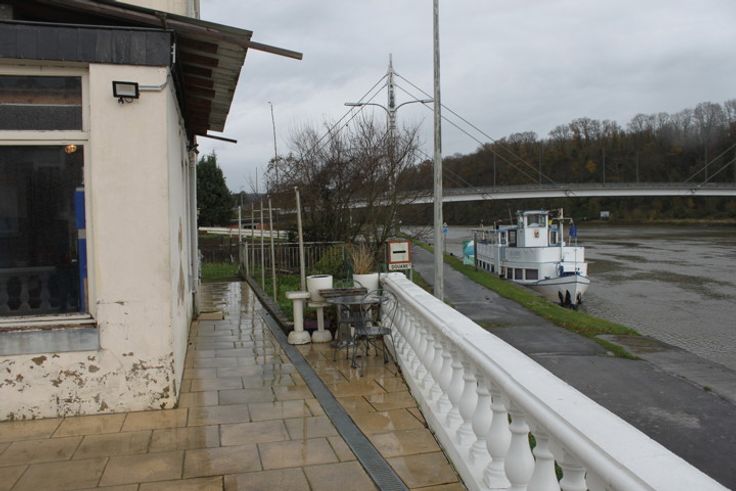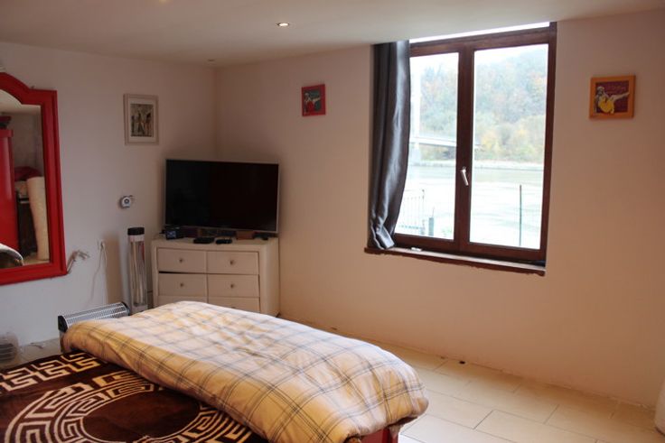 CONFORT: Jardin avec vue sur la Meuse, terrasse de 60m², parking pour 5 voitures, radiateurs électriques, électricité en ordre.