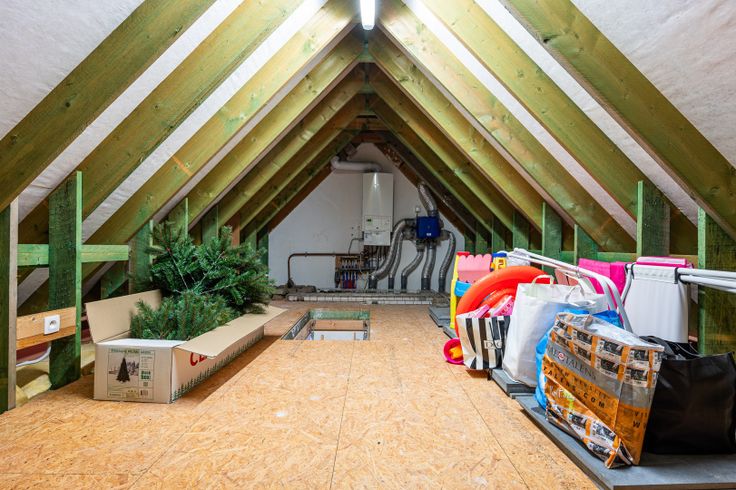 • Eerste verdieping: Hier vindt u drie zeer ruime slaapkamers en een moderne badkamer met inloopdouche. Op de nachthal is er een tweede toilet en toegang tot de zolderruimte via een vouwtrap.