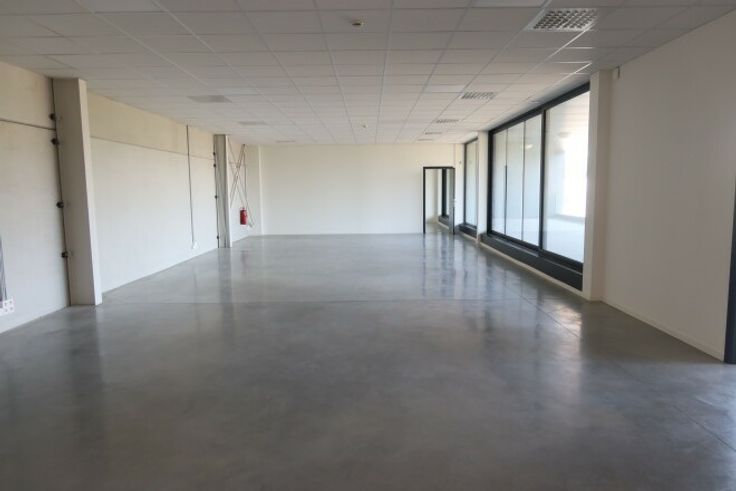 Op het gelijkvloerse vinden we de prachtige showroom van bijna 295 m² met een multifunctionele ruimte, toiletten voor dames en heren en de technische ruimte, samen met een magazijn van 960 m².