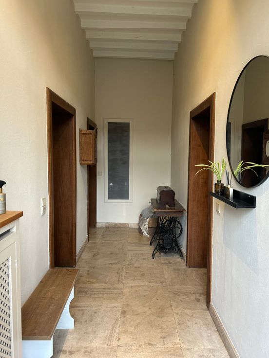 Daarnaast beschikt de hoeve over een aanpalende ruimte die nu dienst doet als veranda/studio, ideaal voor verschillende doeleinden.