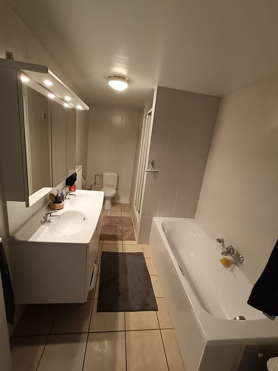 Met 113 m² aan ruimte biedt dit energiezuinige appartement op de tweede verdieping van Villa Romana (hartje Eppegem) een huiselijke sfeer. Geniet van de luxe van twee terrassen (één zonnig, één in de schaduw) en een praktische indeling. Op de benedenverdieping vind je een ruime eetkamer, open keuken, woonkamer, aparte wc en berging. Op de bovenverdieping bevinden zich twee slaapkamers, waarvan één met grote inloopdressing, een ruime badkamer met ligbad, aparte douche, toilet en dubbele lavabo.