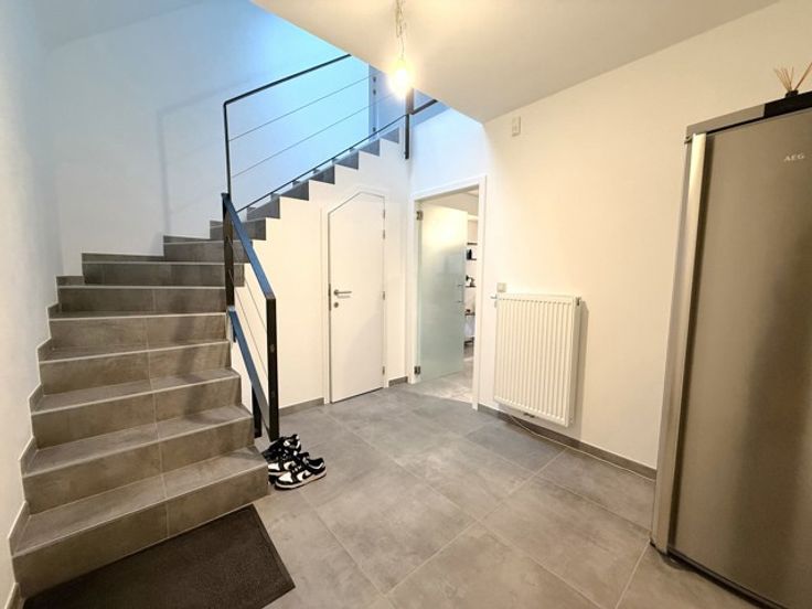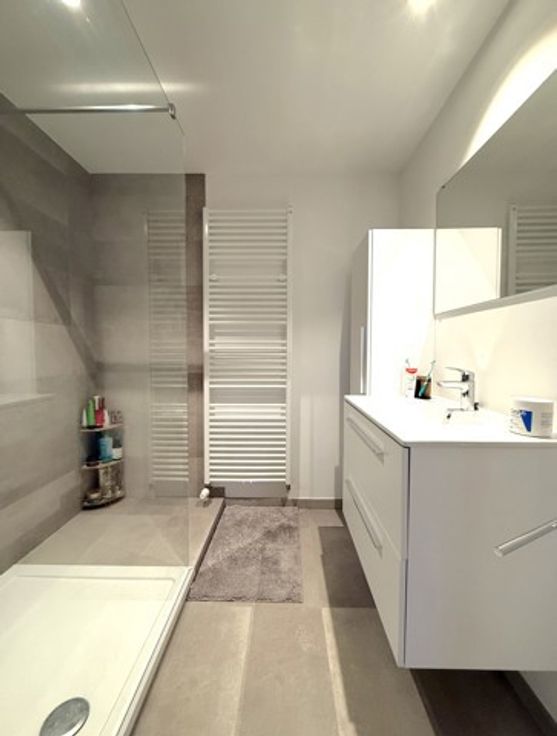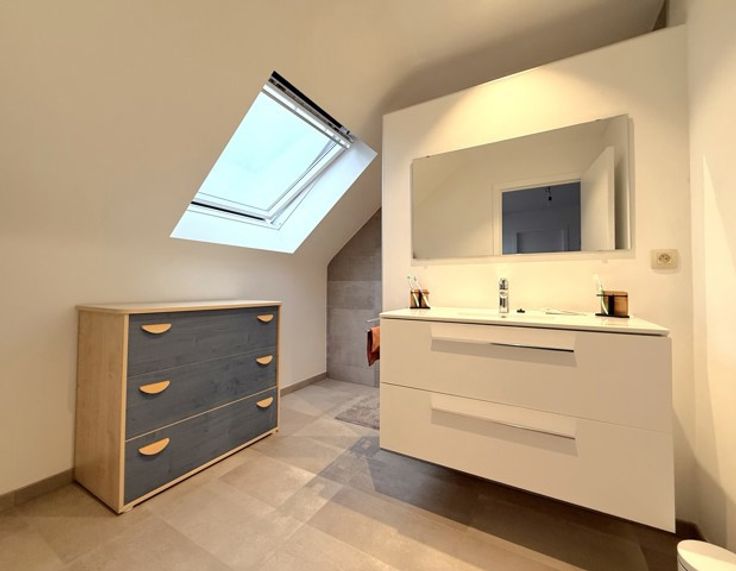 Dans un souci d'efficacité, demandes de visites souhaitées par MAIL ! Dans une rue calme du village d'Aische-en-Refail, au 1er étage de l'immeuble, magnifique DUPLEX (3ch + 2sdd + bureau) avec terrasse (SE), prairie commune, 2 empl. parking, local technique et local poubelles. Très bien isolé, spacieux, lumineux, et construit avec des matériaux de qualité, il se compose comme suit : - 1er étage : hall d'entrée, séjour avec cuisine ouverte super-équipée (électroménagers Bosch), chambre avec salle de douche, buanderie, et wc. - 2ème étage : hall de nuit, 2 chambres, salle de douche, bureau, et wc. Excellent niveau de confort : châssis DV alu, chaudière Viessmann gaz individuelle, alarme, etc. Magnifique vue sur les campagnes - tranquillité assurée ! (Bail : 3 ans (reconductible). - Forfait mensuel : 75 € (charges et entretien des communs, du jardin, des parkings et extérieurs, et assurance du bâtiment). - GL : 2 mois de loyer. - Etat des lieux : par expert et à frais partagés). Situation idéale : entre Eghezée et Perwez, proche de la E411, des commerces, crèches, écoles, transports en commun, et grands axes autoroutiers. Libre le 1er mars 2025. A visiter sans plus attendre. (Visites assurées le lundi 16 décembre 2024 àpd 16h).