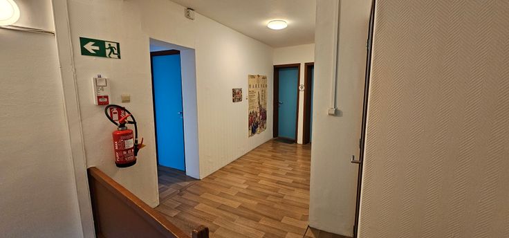Chambre privative avec un lavabo, porte RF30; cuisine, toilettes et douches en commun. Immeuble mis aux normes anti-incendie.