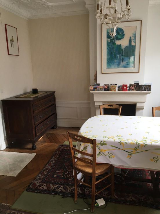 Situé au 5ème étage avec ascenseur et tout le charme de l'ancien, avec parquet, moulures, et cheminée.