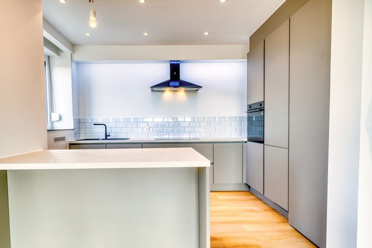 De nieuwe uitgeruste keuken bestaat uit een inductievuur met 4 pits, dampkap, combi-oven (micro en hetelucht), vaatwasser, koelkast en aparte vriezer.