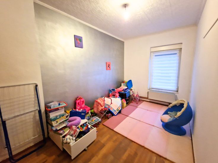 Le bien de 123m²* se compose comme suit : hall d’entrée, salon/salle à manger, cuisine, salle de bain/WC. À l'étage : hall de nuit, 3 chambres. Au 2ème : grenier (aménageable pour une 4ème grande chambre). Au sous-sol : cave.