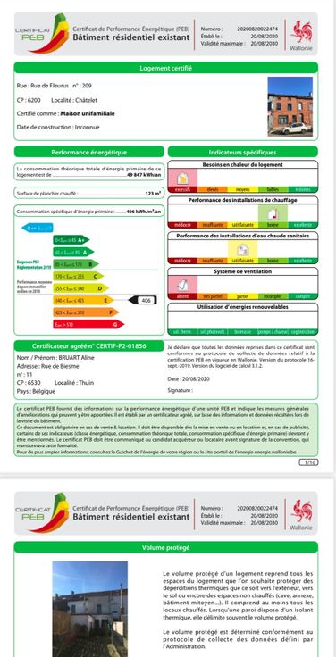 Superficie PEB plancher chauffé* - Code unique : 20200820022474 - RC : 513 €.
