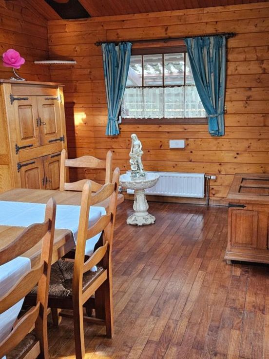Dans le Bois de Roly, Beau Chalet en Bois avec abri de jardin et bois dans le Domaine de Roly (Zone de loisirs). Vide Ventilé, Belle cuisine équipée, Salle à manger, salon dans véranda, 1 buanderie-chaufferie, 1 chambre à coucher, 1 salle de douche avec WC, châssis en bois double vitrage, toiture en tôles granulées, distribution d'eau via le Domaine, puits perdu, chauffage mazot, chaudière récente, vannes thermostatiques,, Très bon état général.