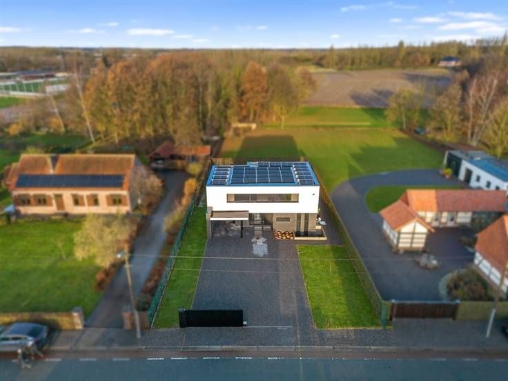 Droomt u van een exclusieve woning met alles erop en eraan? Deze prachtige moderne open bebouwing met zwembad op een knap perceel van 1.009m² is uw kans! Met een indrukwekkende bewoonbare oppervlakte van maar liefst 400m², verdeeld over drie volwaardige verdiepingen, biedt dit huis de ultieme combinatie van luxe, comfort en functionaliteit. Met een uitzonderlijk laag E-peil van 42 is deze woning niet alleen een toonbeeld van stijl, maar ook van energiezuinig wonen. Bij binnenkomst word je meteen verwelkomd door de lichte en ruime leefruimte, waar kwaliteit en comfort hand in hand gaan. De zorgvuldig gekozen materialen stralen luxe en duurzaamheid uit en elke ruimte in de woning is ontworpen met oog voor detail en functionaliteit. De open indeling op het gelijkvloers biedt een royale woonkamer, een eetruimte en een moderne keuken, allemaal met zicht op de prachtige tuin en het zwembad. Tot slot treft men op dit verdiep nog een zeer ruime kantoorruimte, een gastentoilet en een berging. De drie volwaardige verdiepen bieden tal van mogelijkheden. Met meerdere slaapkamers, knappe badkamers en veel ruimte is dit huis ideaal voor gezinnen of wie graag ruim en luxueus leeft. De kelder is volledig bewoonbaar en leent zich perfect als beroepsruimte, thuiskantoor of hobbyruimte. Neem vandaag nog contact met ons op het nummer 011/98.88.98 of via info@dewoonmakers.be