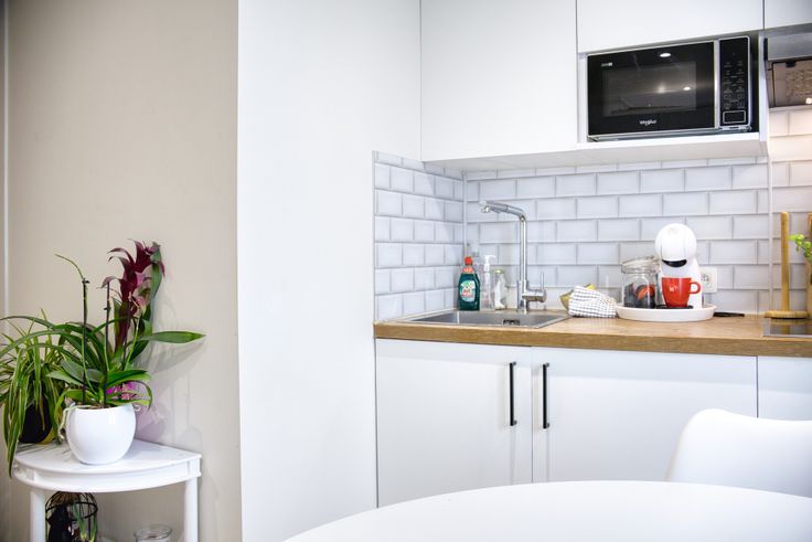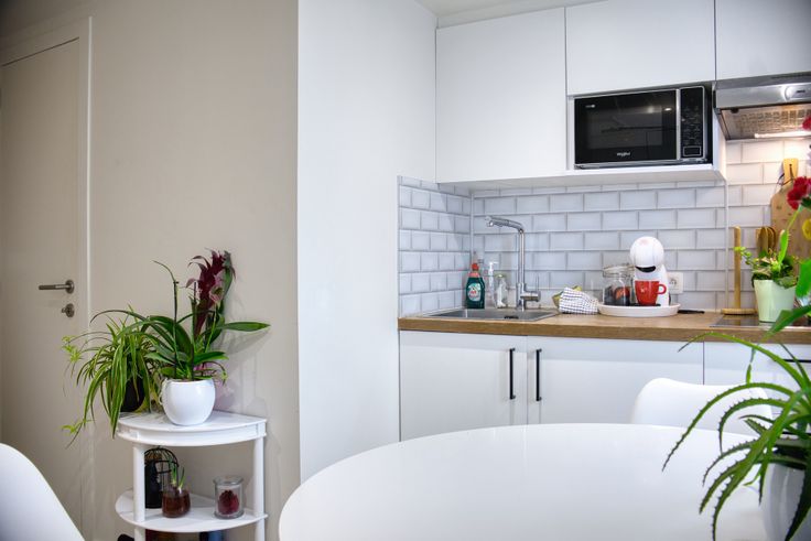 De keuken beschikt over een ingebouwde energiezuinige koelkast en een microgolfoven.