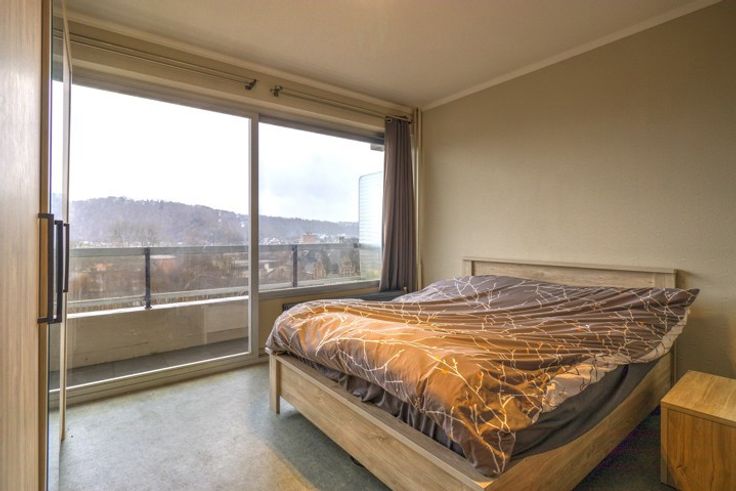 IDEALEMENT SITUE AU 7EME ETAGE D'UNE RESIDENCE EN PLEIN CENTRE DE CHENEE, APPARTEMENT 1 CHAMBRE AVEC BALCON ET GARAGE - Rez-de-chaussée: un emplacement de parking sécurisé dans un box fermé de 20m² - 7ème étage : un hall d'entrée de 4m² avec vestiaire, un séjour de 27m², une cuisine équipée de 6m² (double évier, nouvelles taques électriques, hotte, four, frigo), une chambre de 13m², une salle de bain de 3.5m² (évier, toilette, baignoire/douche) - DIVERS : provision pour charges 175€/mois (communs, chauffage, eau chaude), châssis alu simple vitrage, chauffage central au gaz (calorimètres), porte blindée, vidéophonie, ascenseur, à proximité immédiate de toutes les commodités, quote-part de 150€ (HTVA) à prévoir pour l'établissement de l'état des lieux d'entrée, description non contractuelle communiquée à titre informatif.