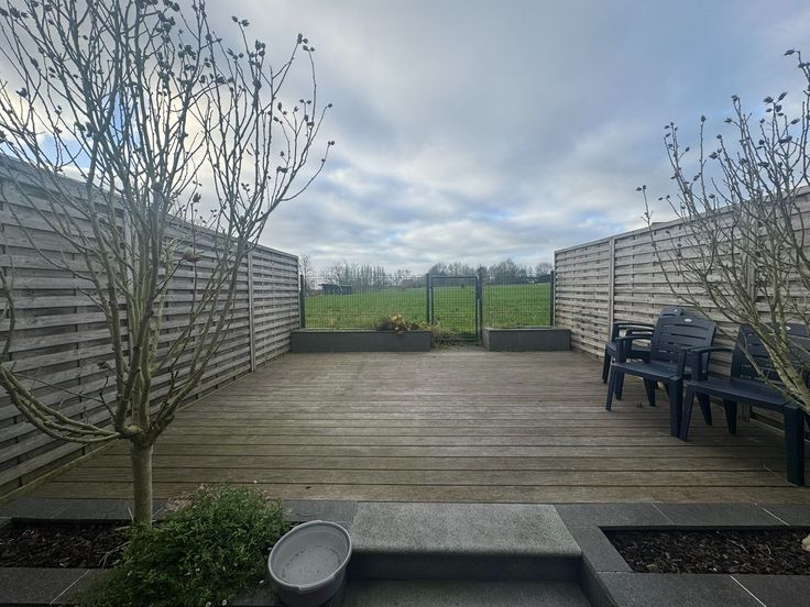 inkom, woonkamer, ingerichte keuken, kelder, badkamer met douche, lavabomeubel en aansluting voor wasmachine, 2 ruime slaapkamers op eerste verdiep , zolder en terras achteraan met open zicht.