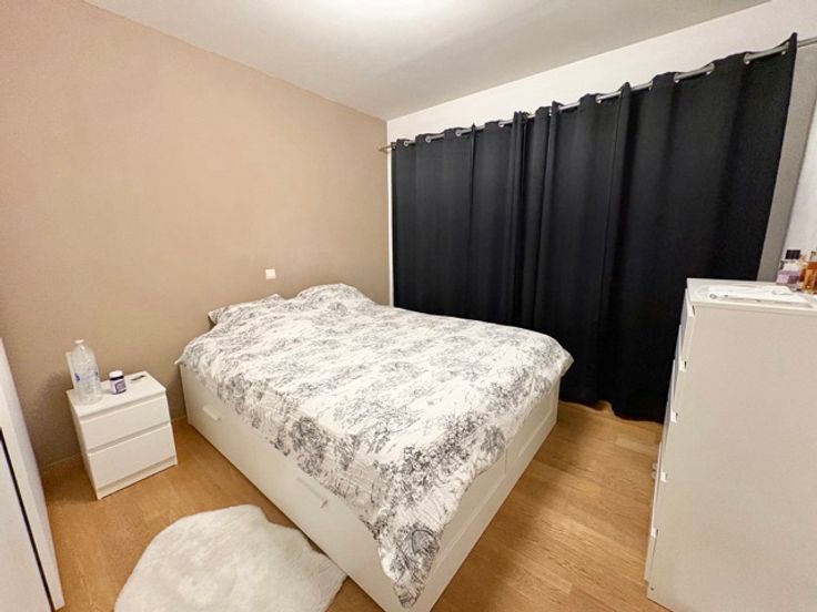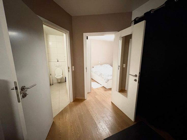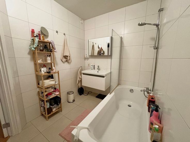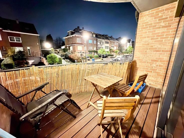 Mooie recent appartement in een klein gebouw van ongeveer 65m² woonruimte, gelegen op de 1e verdieping (G1) - inkomhal, vestiaire, veiligheidspuis, videofoon - woonkamer 25m² - volledig uitgeruste keuken (elektrische kookplaten, koelkast, vaatwasser, magnetron) - 1 slaapkamer 11m² - badkamer met toilet - dubbele beglazing - kelder - garage voor 1 auto - gasverwarming - gemeenschappelijke kosten: 85 euro.