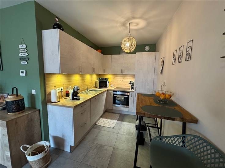 Sorry er is geen nederlandse vertaling beschikbaar. Magnifique appartement neuf situé au 2ème étage et idéalement située en plein centre d'Auvelais, à proximité immédiate de toutes les commodités citadines (divers commerces, marché hebdomadaire, parkings, pharmacie, gare,...).Appartement moderne, agréable à vivre et lumineux. Il se compose d'un grand hall d'entrée avec w.c et buanderie, d'une superbe cuisine hyper-équipée ouverte sur le séjour, lequel donne accès vers une belle terrasse, d'une salle de douche à l'italienne et de deux chambres. Une cave et un emplacement de parking privatif viennent compléter l'ensemble.