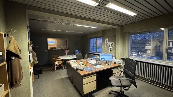 Daarnaast is er een bureauruimte beschikbaar voor administratieve of andere werkzaamheden. Het gebouw heeft centrale verwarming op mazout en een geïsoleerd dak.