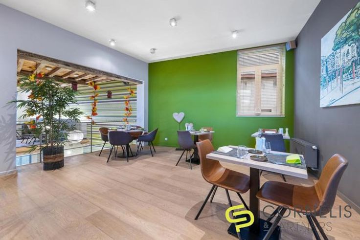 Dit instapklaar stijlvolle restaurant bevindt zich op een toeristische top lokatie van de Vlaamse Ardennen. Het pand werd in 2009 volledig gerenoveerd met kwalitatieve en duurzame materialen en is nog steeds een drukbezochte zaak. Binnen is er over de twee verdiepingen verdeeld, plaats voor min. 80 zitplaatsen. Het aansluitend terras biedt momenteel plaats voor een 20-tal couverts. Het aantal zitplaatsen buiten kan uitgebreid worden op het centrale plein voor de zaak. Zowel vanuit het restaurant als het terras hebben de klanten zicht op het Marktplein, met aansluitend de Vesten. Beiden meermaals per jaar dé toeristische trekpleister in aanloop naar de Muur van Geraardsbergen. Dit voor zowel culturele en sportieve evenementen. Op gelijkvloers de open bar (oa.koeling dranken, espressomachine, glazenwassen Winterhalter met osmose) , toilet voor mindervaliden, volledige ingerichte koude & warme keuken, afwaszone (o.a. Winterhalter met osmose), stockageruimte. Op de eerste verdieping de verbruikszaal, de toiletten (M/V), bureel/stockageruimte. De zolderverdieping (90 m2) kan ingericht worden als ruim appartement/loft. Mogelijkheid om de volledige inboedel (alle toestellen, meubilair, glaswerk, servies, klein keukenmateriaal, …) ook over te nemen (prijs op aanvraag). Interesse ? Bel 0475/361252 of pieter@cornelis-partners.be