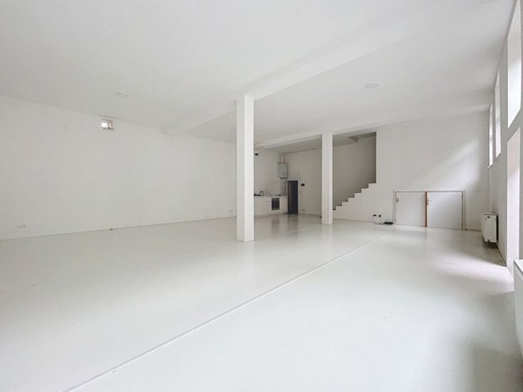 Ontdek deze prachtige danszaal in een achtertuin, vlakbij Place Liedts en Place Lehon. Met een totale oppervlakte van ± 85 m² bestaat ze uit een ruime hoofdzaal van ± 82 m², een volledig gerenoveerde doucheruimte van ± 3 m² en een superuitgeruste keuken.