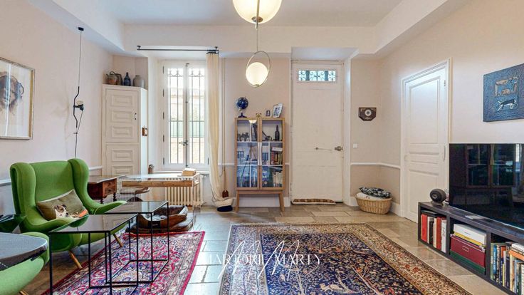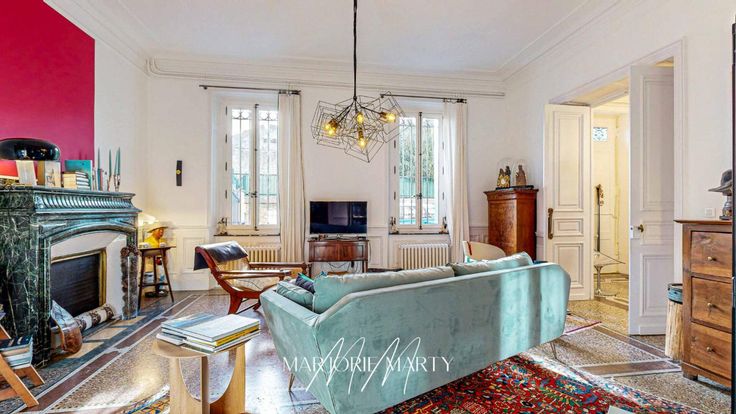 Les plafonds ornés de moulures ,les cheminées d'époque, le majestueux escalier en marbre de Caunes , le parquet massif et le terrazzo témoignent de l'authenticité préservée.