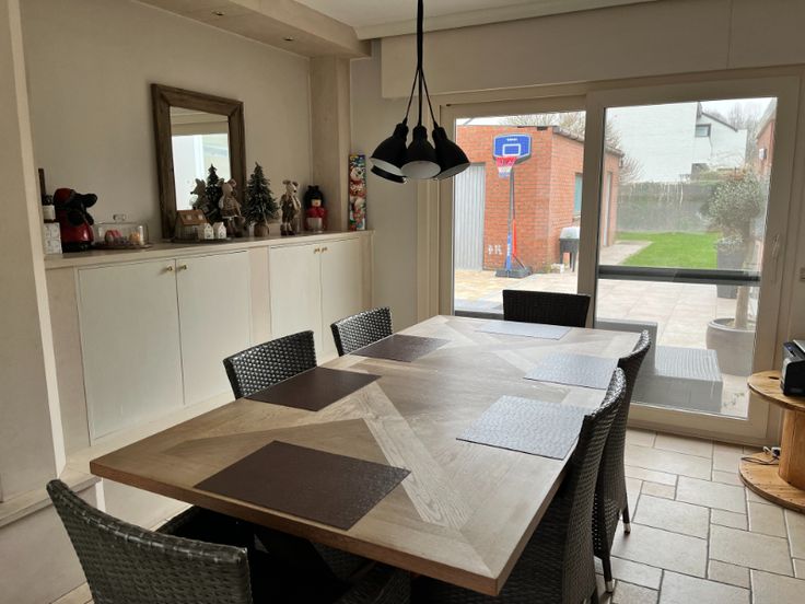 Deze rustig gelegen woning vlakbij sportfaciliteiten kan uw thuis worden! Op het gelijkvloers komen we via de inkomhal met gastentoilet in de lichtrijke leefruimte terecht voorzien van een houtkachel.