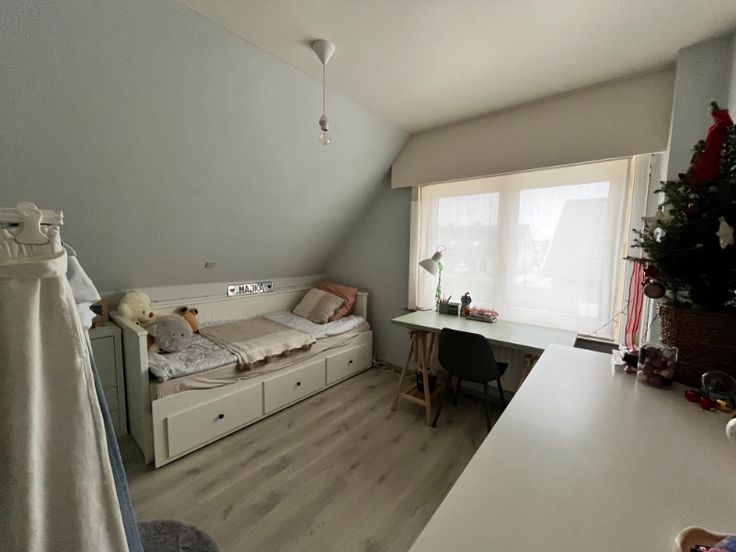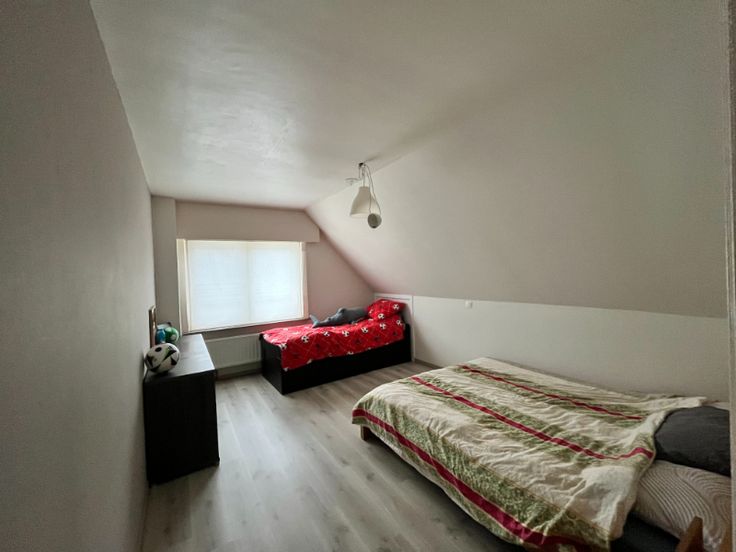 Op de eerste verdieping onderscheiden we 3 volwaardige slaapkamers. De nieuwe badkamer is voorzien van een douche, een toilet en een lavabomeubel.
