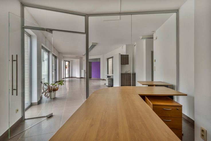 Recente kantoorruimte (2009) op een goede locatie in Denderleeuw. De gelijkvloerse kantoorruimte bestaat uit een onthaal met wachtruimte, polyvalente ruimte met een afzonderlijke bureau. Verder is er een afzonderlijk toilet, kitchenette en ruim terras aanwezig. Er is een grote zichtbaarheid door de grote raampartijen. Een grote troef voor deze handelslocatie is dat er openbare parkeerplaatsen aanwezig zijn.