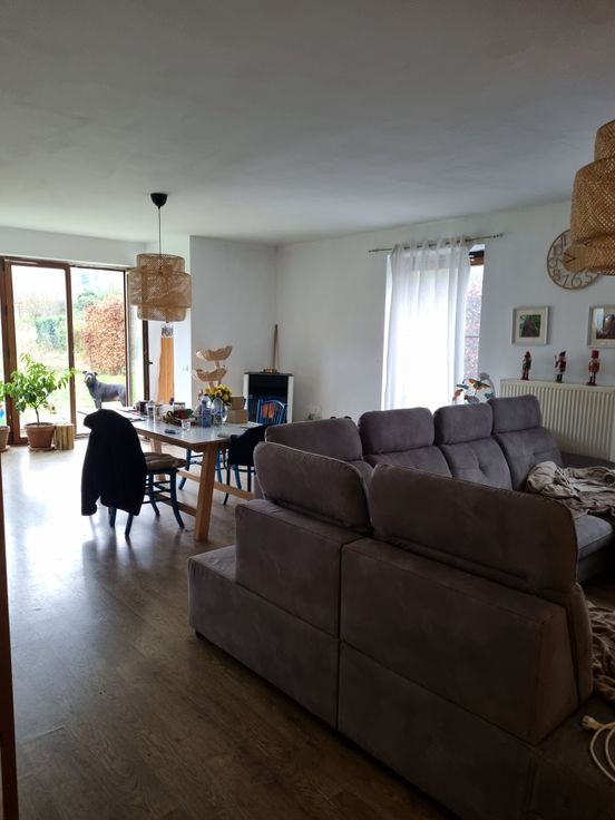 - grand salon/salle à manger avec baie vitrée sur le jardin;