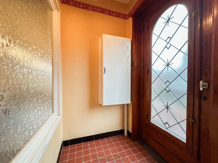 Momenteel beschikt de eigendom binnenshuis over een inkomhal, een woonkamer, een te renoveren keuken, een bergruimte, een apart toilet, een nachthall, 2 slaapkamers, een bureau / hall, een zolder en een kelder.
