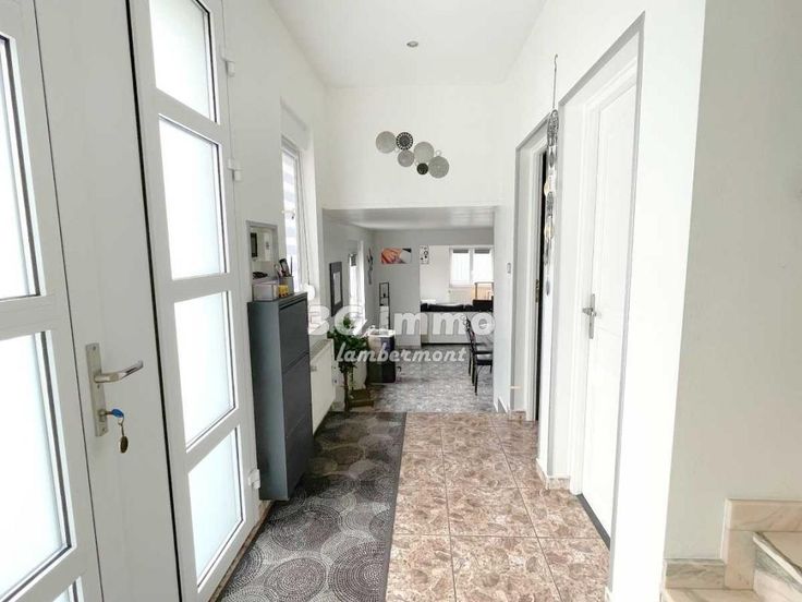 SOUS COMPROMIS DE VENTE AVEC FRANCOIS (06 23 51 05 74) ! G IMMO LAMBERMONT VOUS PROPOSE EN EXCLUSIVITÉ CETTE MAISON JUMELÉE A HEUMONT, AVEC EXTENSION, 128 M² HABITABLES, 3 CHAMBRES, TERRAIN TRÈS PRATIQUE, GARAGE DEUX VÉHICULES : vous retrouverez un espace totalement ouvert au rez-de-chaussée (avec carrelage intégral) : vaste entrée, partie vestiaire (idéale pour avoir les vêtements du quotidien à portée de main) / buanderie, premières toilettes séparées, grand séjour : salle à manger et salon sur plus de 40 m² avec poêle à pellets (ensemble très lumineux) d'un côté, et la cuisine de l'autre (15 m²). L'absence de mur ou de cloison, d'un bout à l'autre, concourt à donner une sensation de grand espace à l'ensemble. A l'étage, via un bel escalier en marbre, vous retrouverez trois chambres : deux sur parquet de 12 m² et 13,5 m², la troisième, carrelée, de plus de 21 m². Secondes toilettes séparées et superbe salle d'eau récemment rénovée (9.5 m²). Les combles sont très propres, sur plancher (15 m² au sol), accessibles depuis une escalier de meunier escamotable. Les extérieurs : clos depuis 2020 : portail avec visoiphone, brise-vue, grand garage pouvant accueillir deux voitures côte à côte, électricité intérieure, fosse, porte motorisée, pergola. Grande cour en macadam et partie pavée. Éclairages indirects. Peu de vis-à-vis et bien orientés. Aspects techniques : chauffage central chaudière 2020 fioul (cuve 2000 L extérieure : pas d'odeur dans la maison) entretenue, poêle à