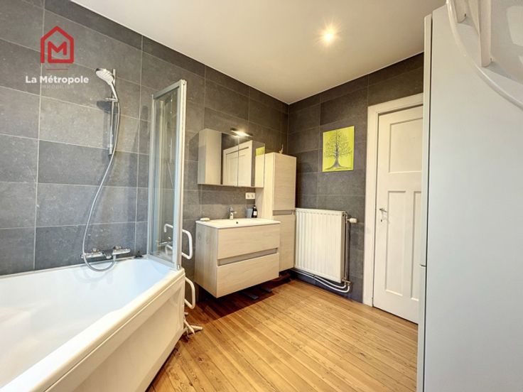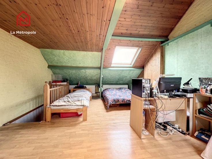 !!!!! SOUS OPTION !!!!! La Métropole Immobilier vous présente à la vente cette maison 2 façades de 120m² habitables. Située à Châtelineau, proche de toutes les commodités et des grands axes, ce bien est aménagé de la manière suivante : Au rez-de-chaussée : un hall d'entrée donne accès à l'escalier menant à l'étage mais également à celui menant à la cave. Au fond de ce hall se trouvent les principales pièces de vie : salon, salle à manger, cuisine équipée, véranda et buanderie avec WC. L'accès à la terrasse se fait via la véranda par le biais d'une porte coulissante. Au premier étage : un hall de nuit donne sur une salle de bain spacieuse ainsi que sur deux chambres. Au deuxième étage : un grenier de 26m² est partiellement aménagé en chambre. Aspects techniques du bien : chauffage central mazout (compteur gaz présent), châssis PVC double vitrage, raccordement à l'égout. RC : 342€ -> POSSIBILITE D'ENREGISTREMENT A TAUX REDUIT ! PEB : E PRIX : FAIRE OFFRE A PARTIR DE 159.000€ SOUS RESERVE D'ACCEPTATION DU PROPRIETAIRE. Celui-ci ne sera automatiquement tenu par la plus élevée recueillie, mais par celle qu'il jugera la plus opportune selon ses exigences (condition suspensive, quotité empruntée, acompte, prix, délai pour signer, etc). Planifier une visite ? Contact au 071/123.950 ou au 0470/29.12.29 ou encore par mail : fm@lametropole.be Plus d'informations sur ce bien : https://lametropole.be Descriptif à titre informatif et non contractuel, susceptible de modification.