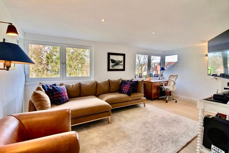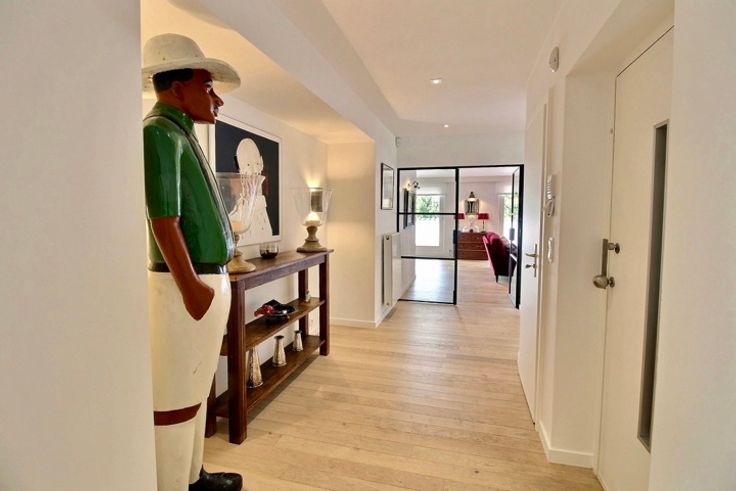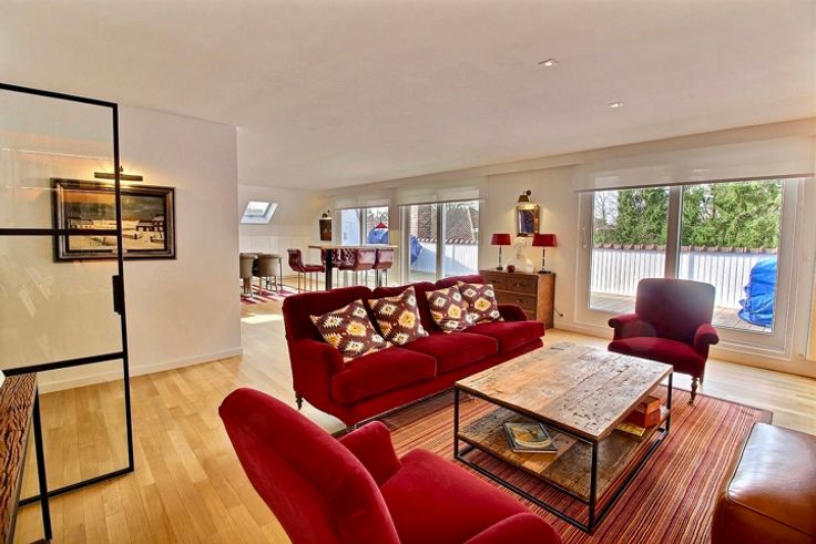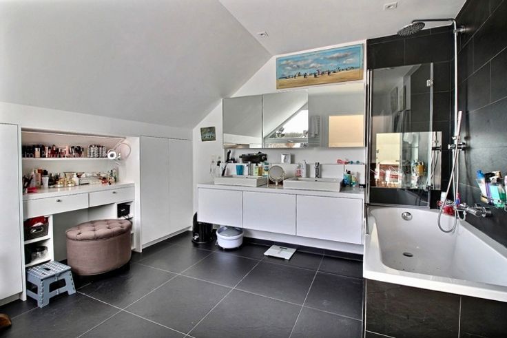 In het hart van Fort-Jaco, in een klein, rustig condominium, prachtige penthouse flat op de 2e en bovenste verdieping, volledig gerenoveerd in 2019. Het appartement bestaat uit ruime ontvangstruimten met parketvloer (+/- 70 m2) die uitkomen op een goed georiënteerd terras, een tv-lounge, een bureau (+/- 25 m2), een grote keuken met ontbijthoek (23 m2) en aparte bijkeuken, 3 slaapkamers (20, 18, 12 m2), kleedkamers, 3 doucheruimtes en 2 zolders. Het appartement heeft ook een mooie privétuin van 125 m2 en terrassen (30 en 10 m2). Condensatieketel op gas, dubbele beglazing, alarm, lift met directe toegang tot de flat. De flat is met smaak en detail gerenoveerd (airconditioning in slaapkamers op het zuiden, rolluiken, terrasverwarmers, nieuw tuinhuisje, nieuw geïsoleerd dak 2022). Klein flatgebouw 2 parkeerplaatsen + 2 kelders + externe parkeerplaats voor bezoekers. EPB: D+. Elektriciteit in overeenstemming