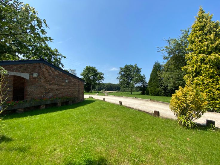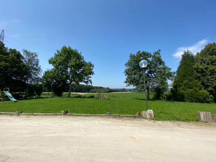 Buiten vindt u meerdere overdekte terrassen met een vrij uitzicht op het platteland, een ruime parkeerplaats, en een speeltuin voor kinderen, wat een aangename omgeving biedt voor families.