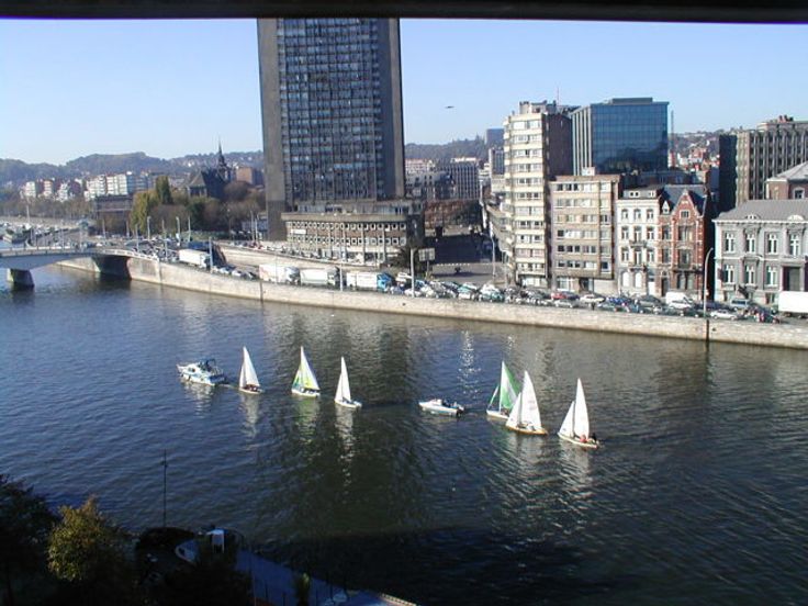 Het ligt in een luxe gebouw op de achtste verdieping met lift en biedt een panoramisch uitzicht over de Maas en de stad Luik.