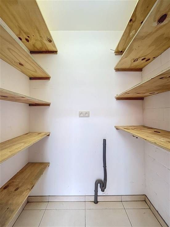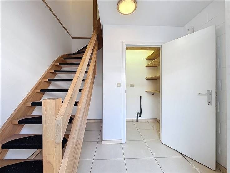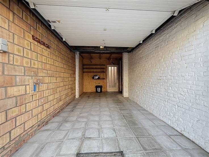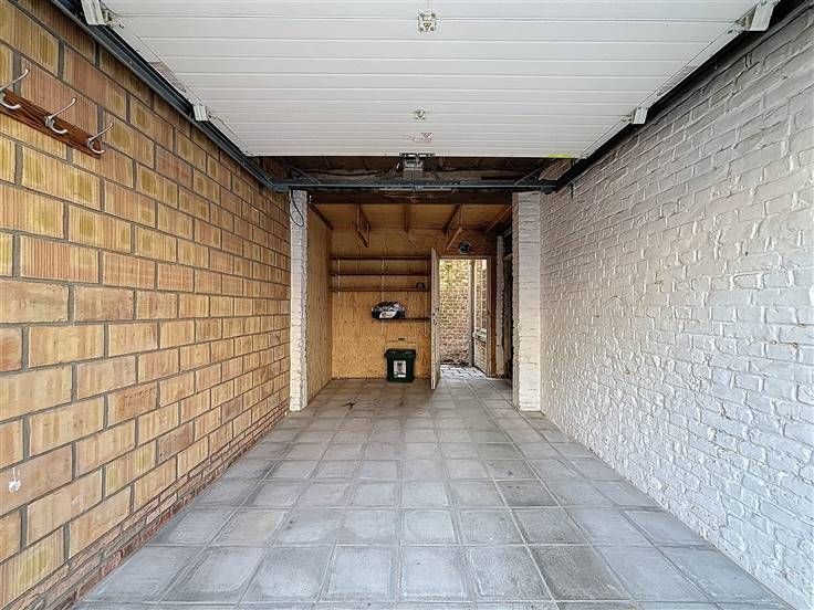 gelijkvloers: inkomhal met wasberging, garage met automatische poort en koertje.