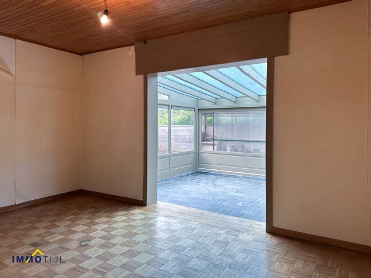 Deze open bebouwing, type bungalow, beschikt op het gelijkvloers over een inkomhal met gastentoilet, een ruime en lichtrijke woonkamer, een op te frissen keuken, 3 slaapkamers, een badkamer (douche en lavabomeubel) en een berging/washok. Verder is er nog een opbergzolder aanwezig. Achteraan de woning bevindt zich een knappe veranda met zicht op de grote tuin. (totale perceel oppervlakte van +/- 11 are!). Er is ook een praktische oprit die plaats biedt voor meerdere wagens en een garage met elektrische poort.  In 2016 werden de ramen volledig vernieuwd, voorzien van CV op mazout.  Gelegen vlakbij natuurreservaat Kapellenmeersen en op slechts een boogscheut van centrum Erembodegem! Voor meer info en/of een bezoek, contacteer ons via aalst@immotijl.be of 053 42 46 99.