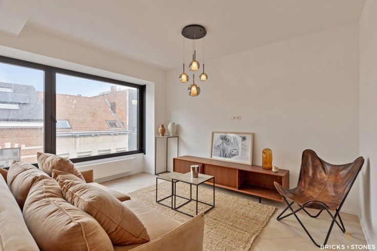 Hoogwaardig gerenoveerd en volledig bemeubeld, 2-slaapkamer appartement op de derde verdieping op het hippe Zuid van Antwerpen. Je betreedt het appartement via de ruime inkomhal voorzien van handige vestiaire die toegang geeft tot de de volledig uitgeruste design keuken, voorzien van natuurstenen werkblad en kwalitatieve toestellen. Deze prachtige ruimte geeft tevens ook toegang tot het rustig gelegen zonneterras aan de achterzijde van het gebouw. Aansluitend aan de leefkeuken vinden we de ruime eetkamer en de schitterende lichtrijke leefruimte. Doorheen het volledige appartementen vinden we een schitterende visgraatparket. Dankzij de grote raampartijen baadt het appartement in een natuurlijk licht. Verder is er nog een apart gastentoilet en ruime berging voorzien van aansluiting voor wasmachine en droogkast. Het slaapgedeelde bevindt zich achteraan het appartement en bevat 2 mooie ruime slaapkamers en een badkamer met inloopdouche en dubbele wastafel voorzien van alle comfort. Gunstige EPC score. Stategisch gelegen vlakbij alle uitvalswegen en openbaar vervoer maar ook winkels en restaurants vind je hier à volonté, op wandelafstand.
