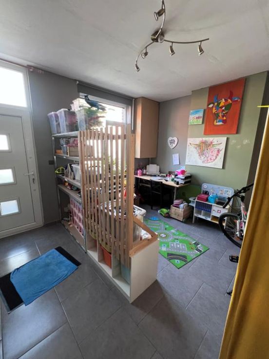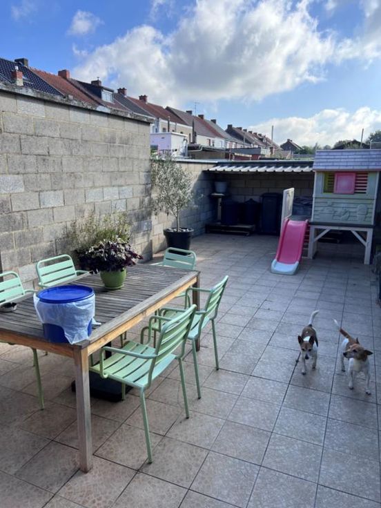Très bonne maison rénovée, en excellent état et habitable de suite, comprenant : Sous-sol : cave RDC : une pièce à l’avant (bureau ou salle de jeux), grande pièce séjour comprenant un coin salon avec insert au bois, salle à manger et cuisine équipée, salle de bain avec douche italienne 1er étage : une grande chambre à l’avant avec coin dressing, une chambre à l’arrière 2e étage : grenier aménageable Extérieurs : terrasse carrelée Chauffage central gaz (chaudière récente) Châssis DV + volets PEB C